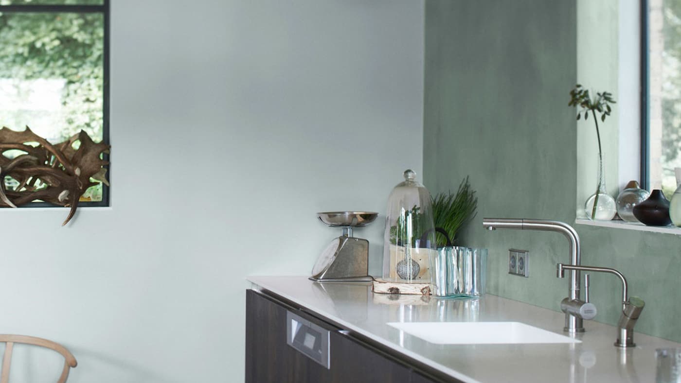 Les murs et les surfaces de la cuisine sont souvent gras. Avant de commencer à peindre, il est important de bien nettoyer toutes les surfaces pour garantir une meilleure finition. La meilleure façon est de les nettoyer avec un dégraissant ou un détergent. Utilisez de l'eau chaude et rincez abondamment tous les résidus puis séchez à l’aide d’un chiffon propre.