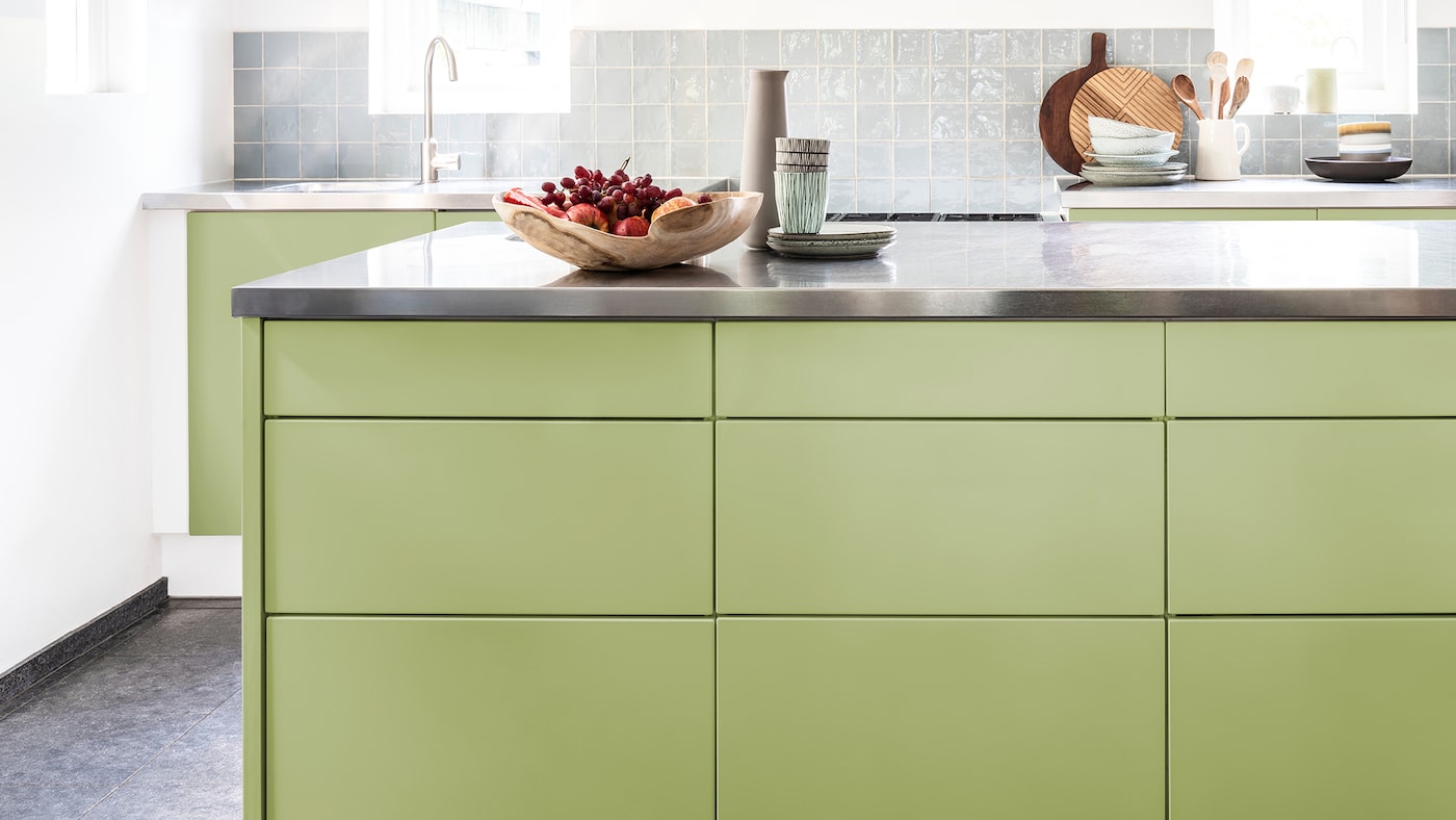 Donnez un nouveau souffle à votre cuisine en peignant les placards dans des couleurs vives. Un vert vif crée une ambiance stimulante et évoque de longues promenades reposantes et des sorties amusantes au parc. Optez pour un plan de travail et des accessoires en métal qui créent un espace moderne et sans chichis où vous pourrez cuisiner et recevoir.
