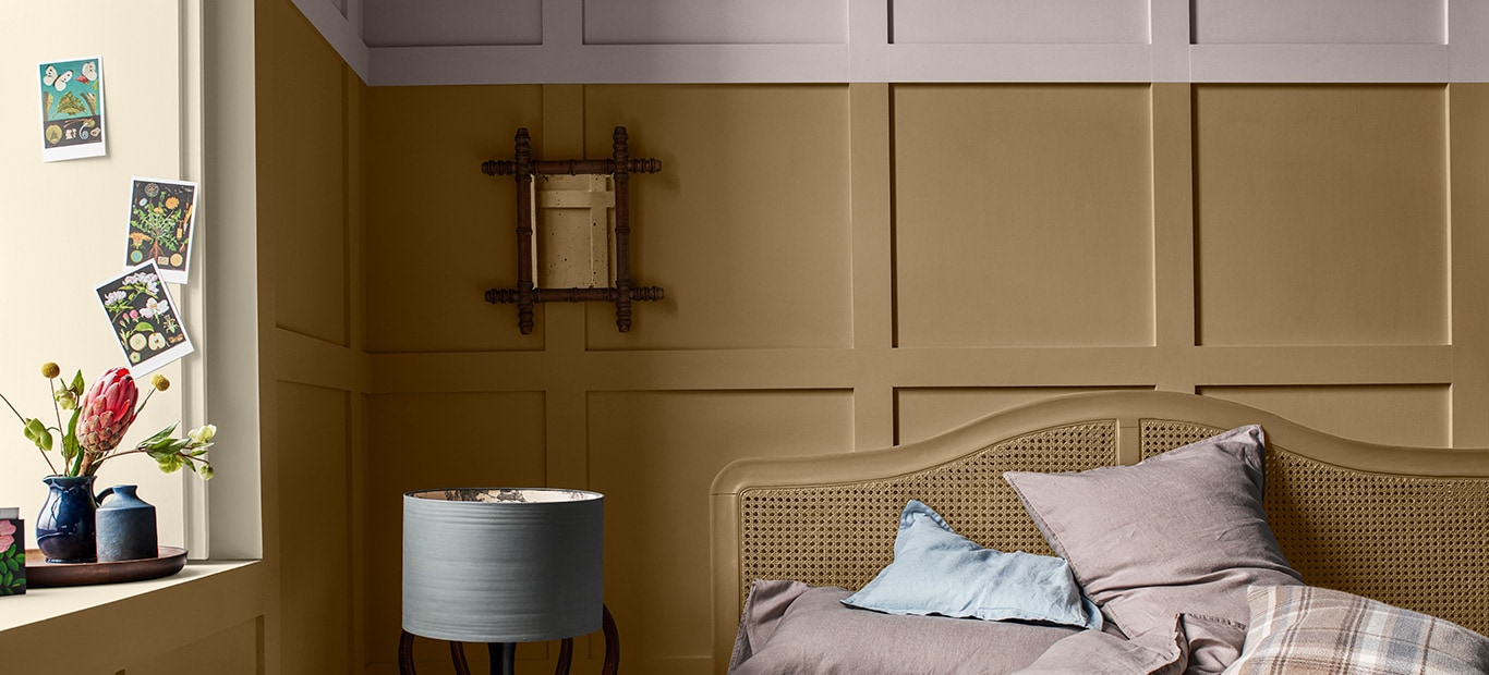 La palette Modern Heritage se prête idéalement à la création d’une ambiance calme et raffinée dans une chambre à coucher. La chaleur du ton chocolat associée à la douceur du rose donnent une subtile touche romantique à la pièce et procurent une sensation de cocon.