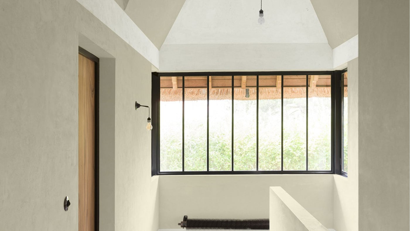 Ce couloir en Blanc Marbre et Artichaut est bien plus qu’un passage. Ces deux teintes naturelles, plutôt proches l’une de l’autre, suffisent à créer un intéressant jeu de lignes. Les formes géométriques épousent l’architecture du bâtiment.