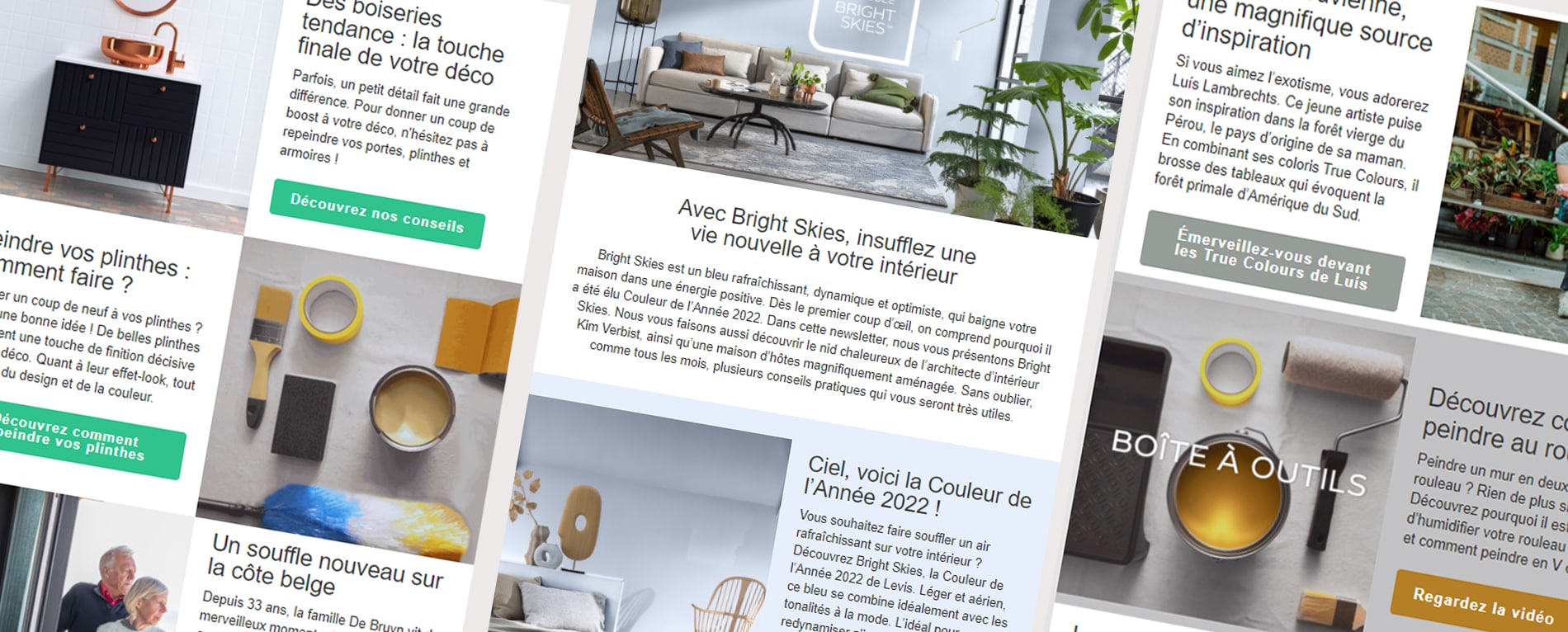 Et si vous receviez une dose mensuelle d’inspiration et de conseils déco, réalisés par des spécialistes de la décoration ? Abonnez-vous à la newsletter de Levis et restez au courant des tendances et des combinaisons de teintes qui vous feront certainement changer votre intérieur. Transformer votre maison n’a jamais été aussi simple !