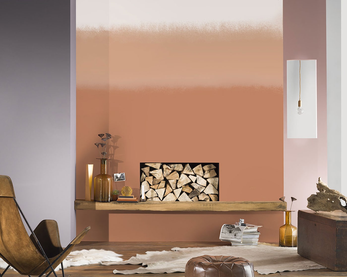 Met deze verftechniek kan je op één muur twee kleuren combineren en een verbluffend effect bekomen. Het is heel makkelijk en voor een optimaal resultaat, kies je best kleuren die niet te ver uit elkaar liggen.