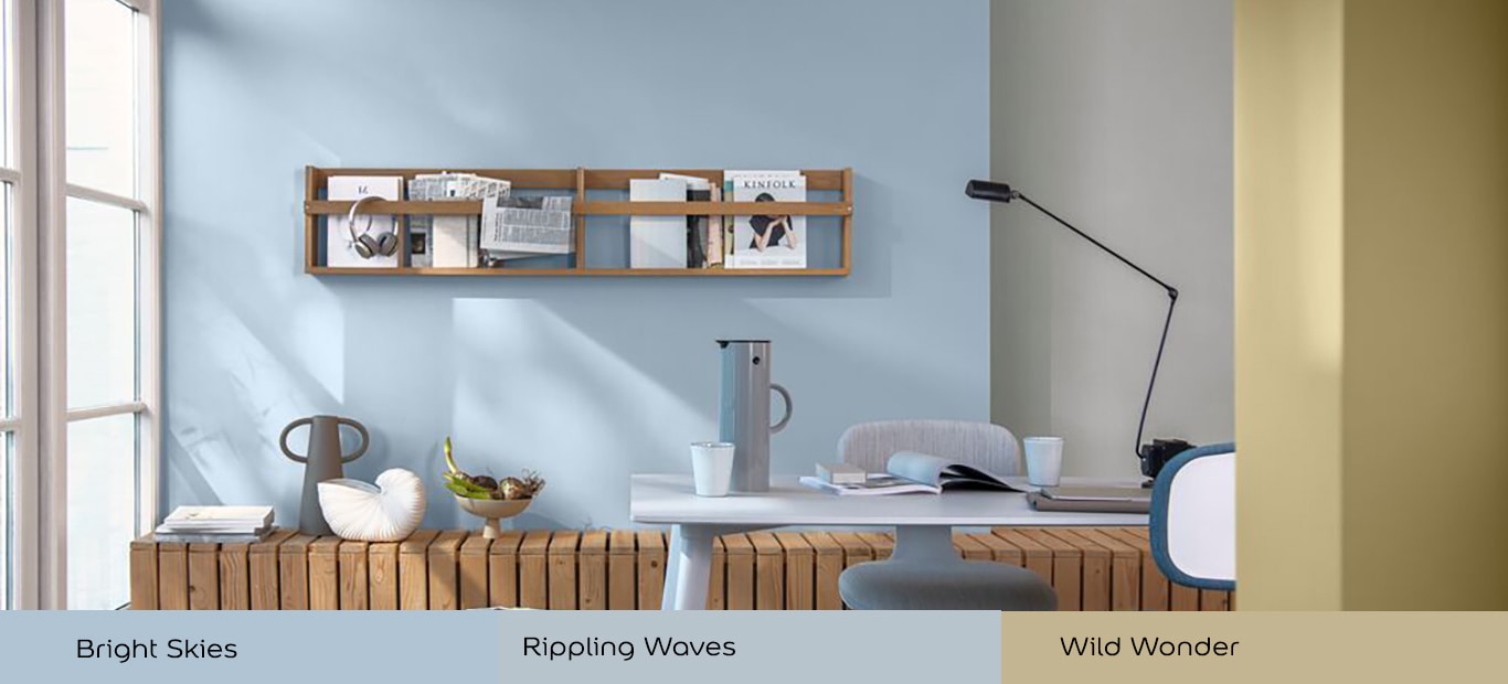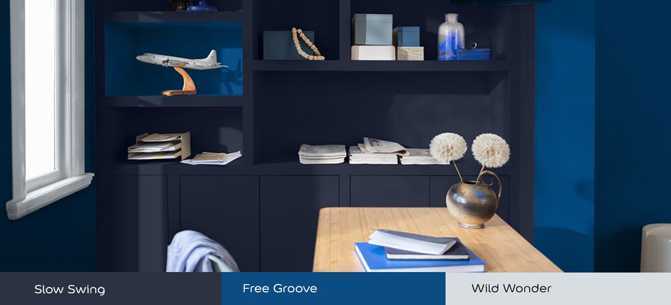 Blauw is een uitstekende keuze voor werk- en studeerruimtes. Vooral donkerblauw en grijsblauw creëren een rustige, evenwichtige omgeving die concentratie stimuleert.