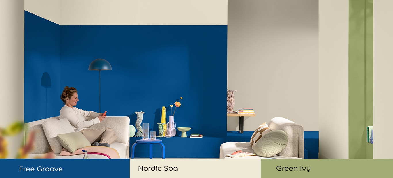 Dankzij de rijke ondertonen is blauw verrassend veelzijdig. Het kan zowel een krachtige basis vormen als een verfijnde accentkleur binnen uiteenlopende kleurenpaletten. Zo geef je je woonkamer moeiteloos een stijlvolle en evenwichtige uitstraling.