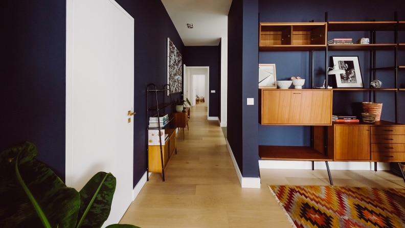 Door kastdeuren of plinten zwart te lakken maak je een duidelijk statement op het vlak van design. Een inkomhal met zwartgelakte plinten is er eentje die bezoekers niet snel zullen vergeten en die van de ruimte het middelpunt van de belangstelling zal maken in je huis.
